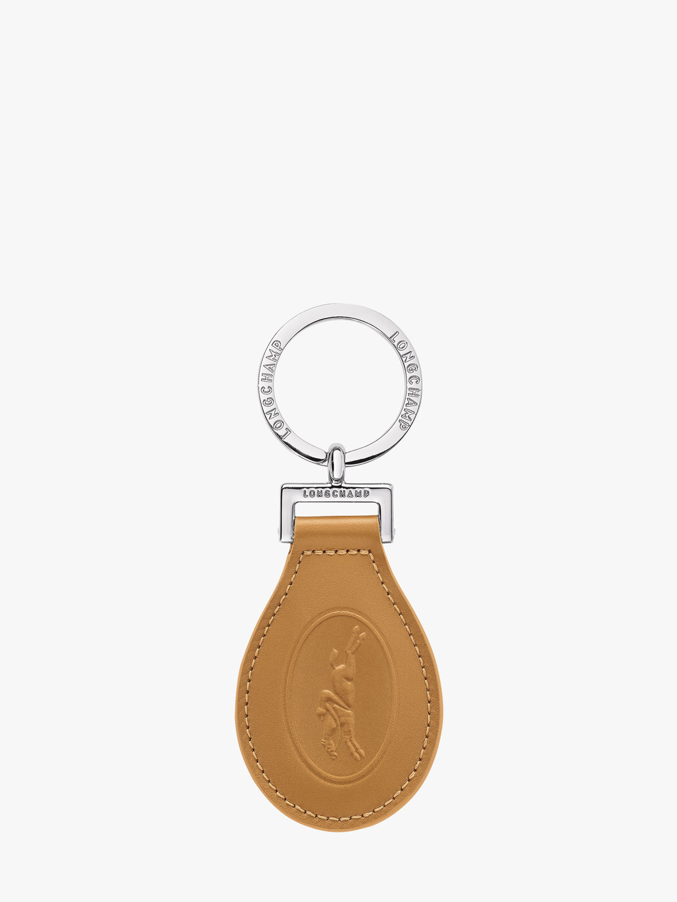 The ""Le Foulonné LONGCHAMP"" keychain embodies practical elegance with its cowhide leather composition. This refined keychain, enhanced with leather, is embossed with the iconic Longchamp rider. Gradually breaking free from its exclusively utilitarian purpose, the keychain explores new uses, willingly transforming into a charm or even a bag accessory. Longchamp reinvents it each season in a wide range of versions, always with the same attention to detail.