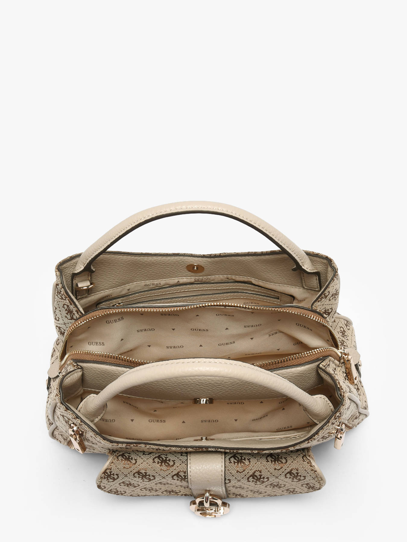 Le sac porté main JESSA GUESS en polyester allie élégance contemporaine et fonctionnalité. Son extérieur comporte trois poches avant et une poche au dos, offrant un accès pratique à vos indispensables. La fermeture zippée assure la sécurité de vos affaires, tandis que l’intérieur est parfaitement organisé avec trois compartiments, deux poches simples et une poche zippée, permettant de ranger vos essentiels avec efficacité et style. La bandoulière réglable et amovible permet de le porter à la main ou en bandoulière selon vos envies, tandis que la hauteur de l’anse de 10 cm garantit un confort optimal. Compact et structuré, ce sac complète parfaitement un look urbain ou sophistiqué, apportant une touche chic et moderne à vos tenues. Chaque détail, des finitions soignées à la qualité du polyester, reflète le savoir-faire GUESS, faisant de ce modèle un accessoire pratique, élégant et tendance au quotidien.
