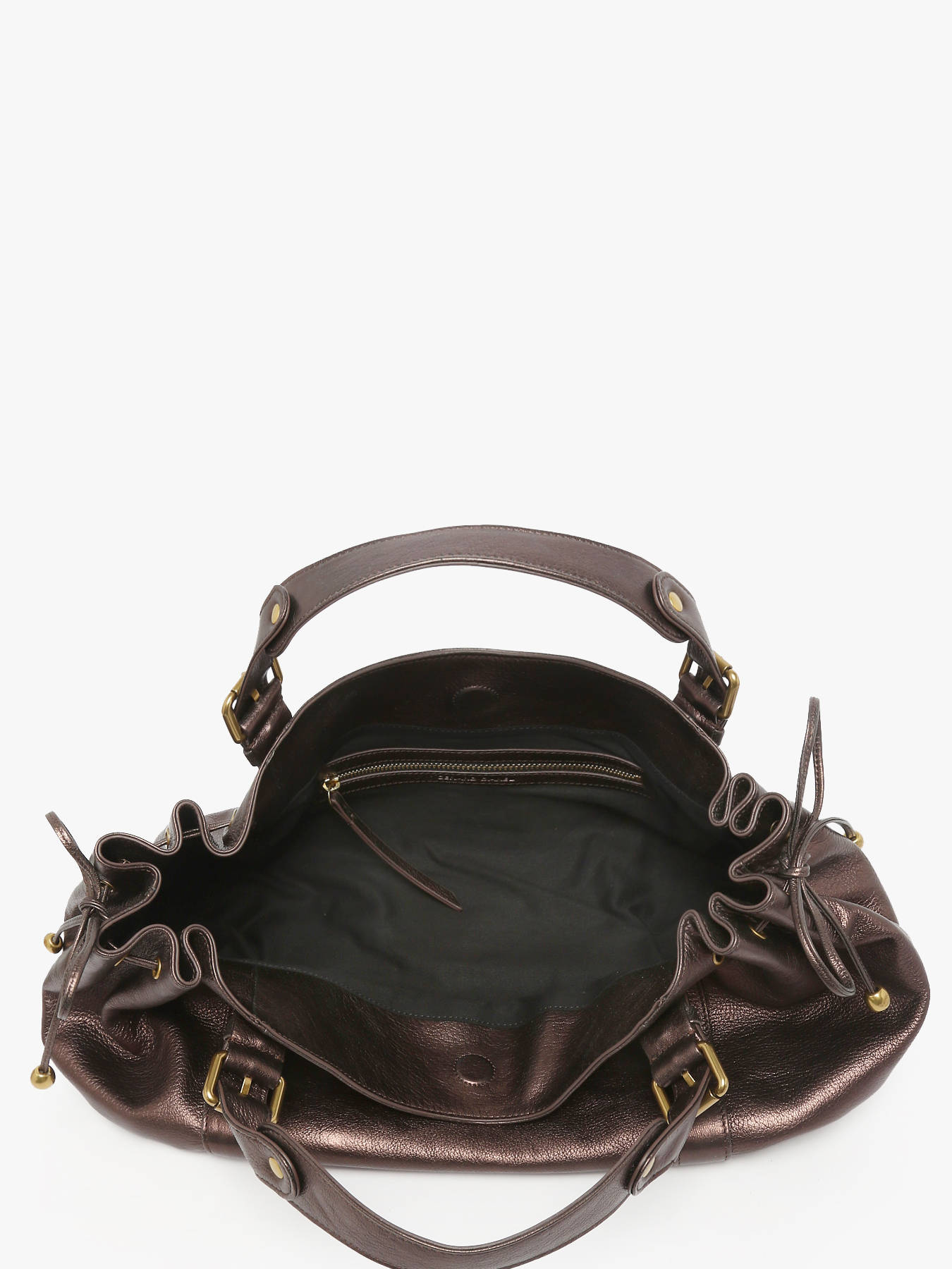 The GUN METAL shoulder bag by GERARD DAREL captivates with its modern allure and subtle shine. Crafted from metallic goatskin leather, it combines softness, lightness, and sophistication—perfectly showcasing the brand’s exceptional craftsmanship. Its luminous finish adds a contemporary and elegant touch, ideal for brightening up both daytime and evening looks. The magnetic closure ensures practical and secure use, while the 16 cm handle allows for a comfortable and natural shoulder carry. The spacious, well-designed interior includes a main compartment and a zipped pocket for discreet storage of your personal belongings. The GUN METAL bag by GERARD DAREL is the perfect accessory for those seeking a refined, chic, and timeless style with a touch of radiance.